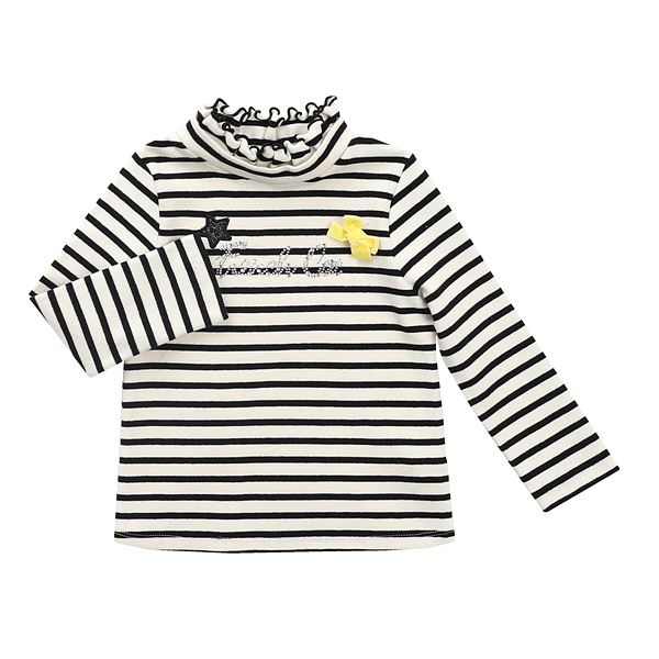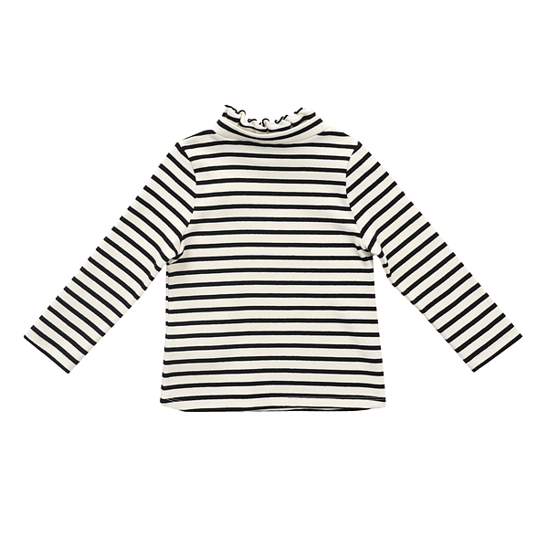상품설명 깔끔한 디자인의 상큼한 검정과 아이보리 조합의 스트라이프 목폴라 프릴 티셔츠 입니다. 목에 프릴 장식이 있고 적당히 핏 되는 라인으로 레이어드 하시기 좋습니다. 엘로우 모직 JP/SK와 함께 코디하는 것을 추천해드립니다. 어떤 착장에나 귀엽게 매칭하기 좋은 데일리 아이템입니다.