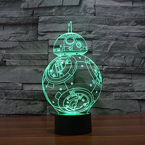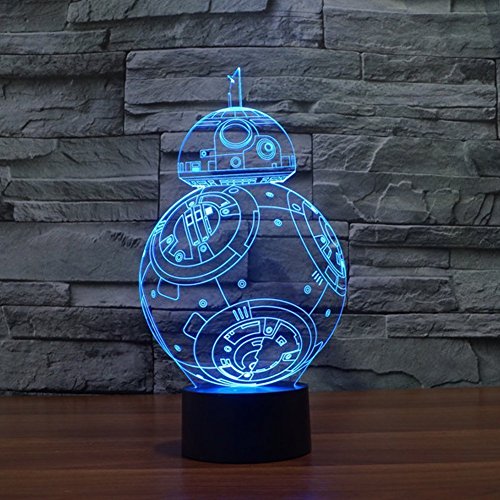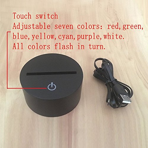-. Feature : 3D VISION EFFECT- especially in the dark or take a photograph, the vision thrill will be strong! / SMART TOUCH BUTTON & EASY TO USE- by which the light can toggle between 7 kinds of monochrom color mode and 1 flashing color mode. / 3. DURABLE & ENERGY SAVING- durable base in which there are 9 LED beads, powered by 5V USB Cable connected to PC or your home adaptor,this make it more energe saving. Power spend: 0.012kw.h/24 hours, LED life span: 10000hours / 4. COOL GIFT FOR STAR WAR FANS & GOOD DECORATIONS FOR YOUR SPACE- your kids or friends will love this cool gift, and it is also a perfect decoration for your kids bedroom or bathroom office etc... And it's simple and stylish design can make your space felt much personal. / 5. 100% RISK-FREE SATISFACTION GUARANTEE- we are confident with the quality of our product, we also want to promise you to confident your buying.