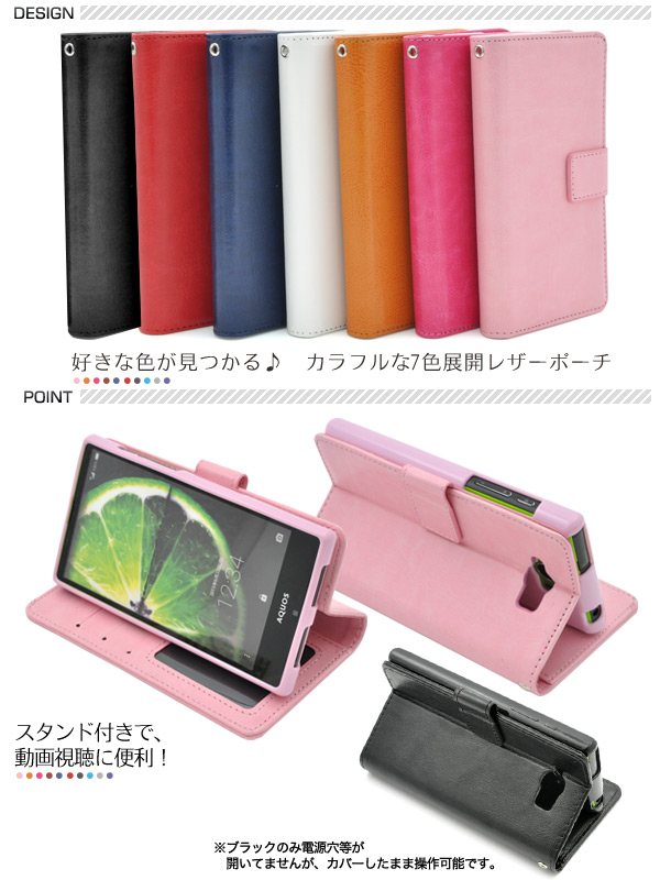 カラフルな6色展開のAQUOS SERIE SHV32用カラーレザースタンドケースポーチ。