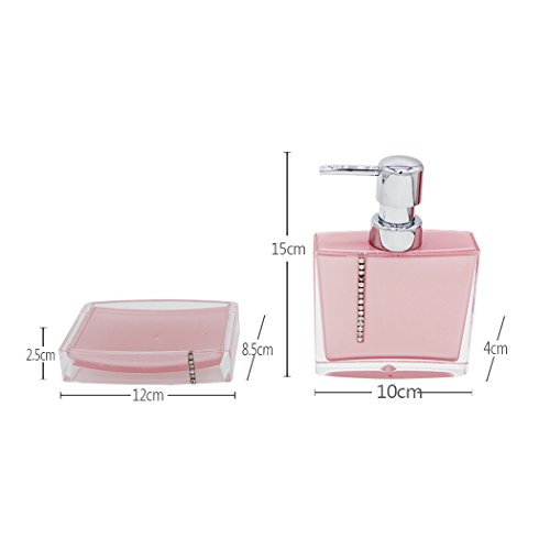 - ✔COMPLETE BATH ACCESSORY SET---1 lotion/soap dispenser (5.9"×3.9"×1.6"), 1 toothbrush holder (3.9"×3.5"×1.6" ) 1 tumbler (3.5"×2.8") and 1 soap dish (4.7"×3.4"×1")