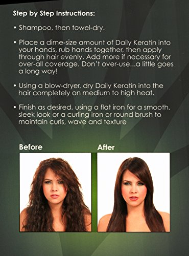 Daily Keratin's lightweight and non-greasy formula is perfect for all hair types and imparts shine, strength and lubricity to the hair. Its thermal protectant properties protect the hair from heat styling tools. Also use Dally Keratin to get the most out of your in-salon Investment' Daily Keratin iscompatible with all keratin treatments