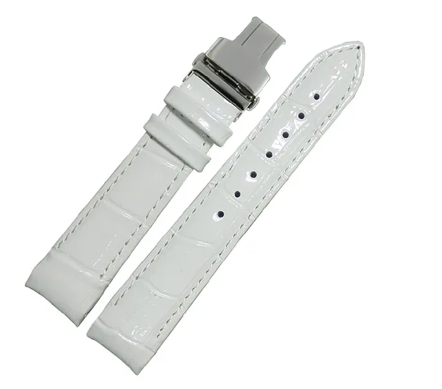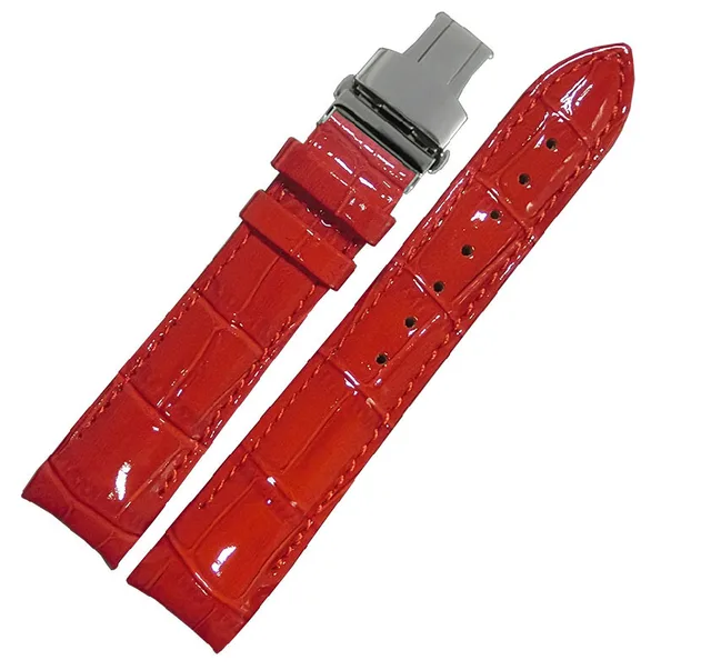 | [해외] 18 미리메터 레드 악어 패턴 정품 가죽 시계 밴드 스트랩 팔찌 광택 스틸 나비 걸쇠 버클 t035 |