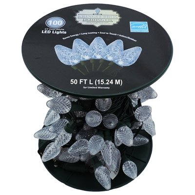 C7 LED COOL WHITE, Green Wire, LED Christmas Light Strand on Spool - 100 Lights - 50 ft long - 6" Spacing of LED's
