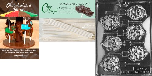 Cybrtrayd 45St25Bk-K006 'Clown Lolly' Kids Chocolate Candy Mold with 25 4.5-Inch Lollipop Sticks and Chocolatier's Guide