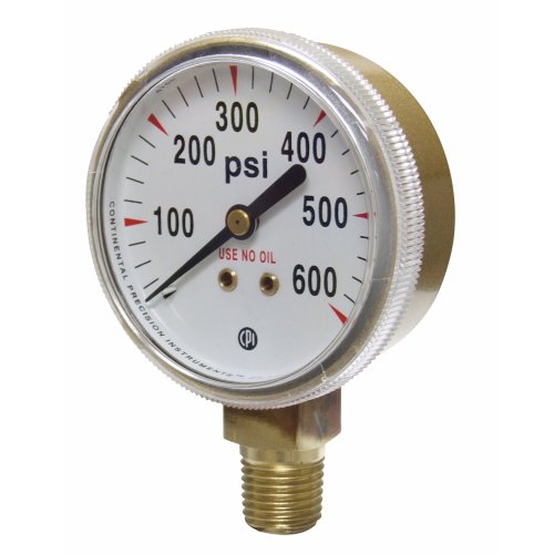 Uniweld G8S Gauge with 0-600 PSI and 1/4-Inch NPT Bottom Mount Gold Steel Case, 2-Inch