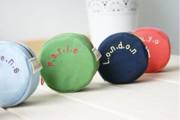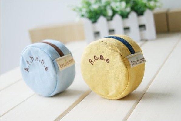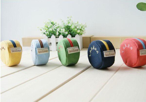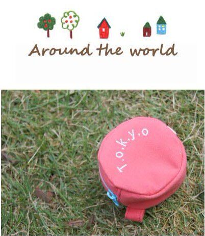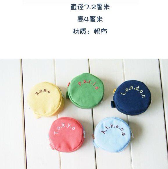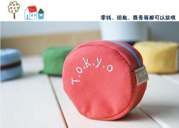 Lovely round canvas candy color small zero purse letters Coin PursesWHOLESALE