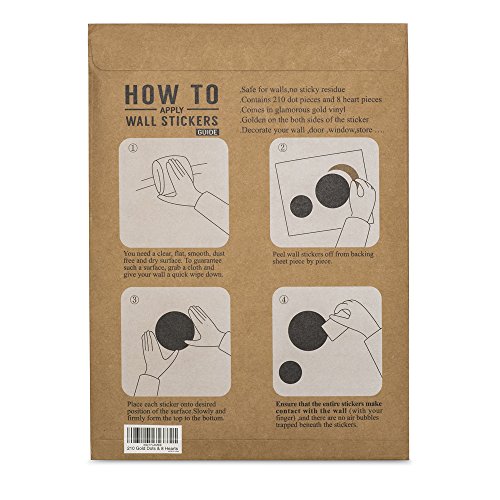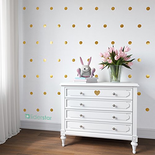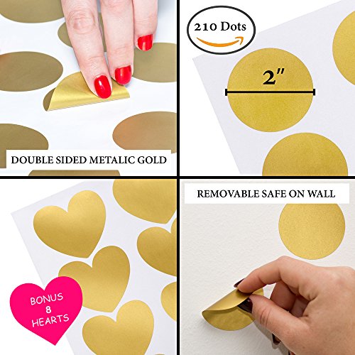 Gold Wall Decal Dots (218 Decals including free 8 Hearts),Removable Gold Wall Decor -Window Decals 2" Round Circle With Gift Box Stickers for Kids Room,Nursery Room by LIDERSTAR