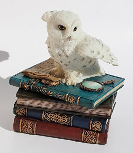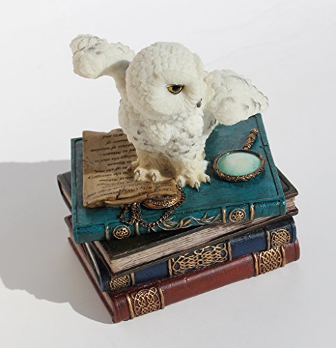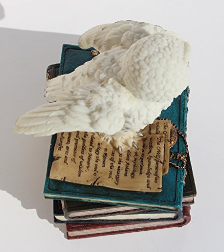 4.75 Inch Snow Owl Flap Wings on Books Trinket Box, White Color