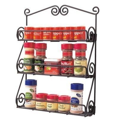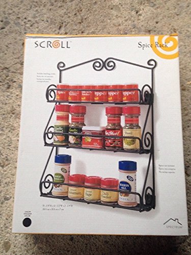 -. Brand : Kitchen Lovers -. Color : Black -. EAN : 0802417150770 -. Feature : The best stylish and modern rack with any kitchen decor / Mounting hardware is included / Constructed of a durable metal with a black finish / 3 shelves to attractively display and keep spices handy, the rack offers ample space / Freeing up counter and drawer space for cooking and baking -. PackageQuantity : 1 -. ProductGroup : Kitchen -. ProductTypeName : KITCHEN -. Title : The BEST Scroll Spice Rack Black Spectrum Metal Wall-Mountable -. UPC : 802417150770