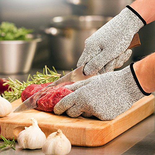 -. Feature : Cen's en388 level 5 protection, durability with best cut resistant material, 4 times stronger than leather / Lightweight, breathable, flexible and extra comfortable / Best food grade, made from polyethylene and proP.R.Ietary silica based fibers for chef use