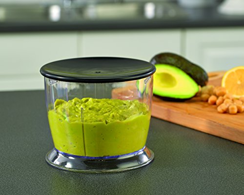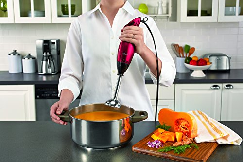 The Oster Immersion Hand Blender with Chopper is a must-have for fast and easy kitchen prep. Grab it anytime you need to quickly blend, puree, chop or dice ingredients for your recipes. Make a creamy potato leek soup, chunky salsa, fruit puree and even blend a smoothie! With its powerful 250-watt motor, every task is made easier. For convenience, a mixing/measuring cup and 3-cup chopper attachment with lids are included to prep and store ingredients for later use. Variable speed dial with HIGH and LOW settings provide the control you need to get just the right consistency.Feature