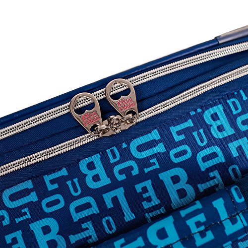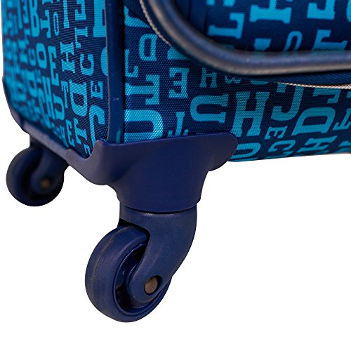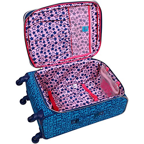 -. Feature : Constructed of durable polyester materials / Partially lined P.R.Inted interior with tie-down straps / 4 easy glide spinner wheels / Zippered internal mesh pocket / Telescopic push-button handle system