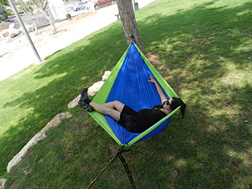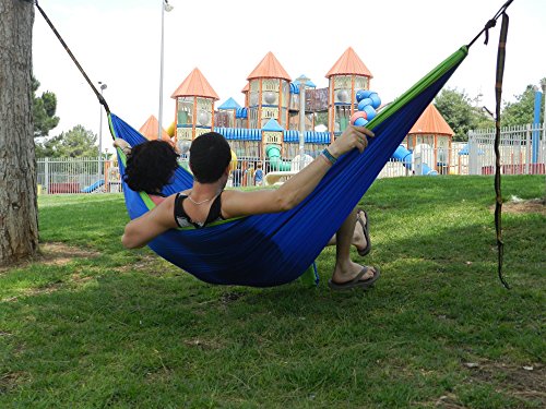 ASSURE MAXIMUM COMFORT AND SAFETY: Have you had enough with cheaply made hammocks that get easily ripped, leaving land flat on the ground? Well, this top notch camp and backyard double hammock is made of heavy duty parachute fabric and it features an astounding 500lbs weight capacity. Get on it with your friend, rest comfortably and leave all your worries behind.