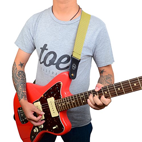 -. Title : Amumu Classic Tweed Guitar Strap Yellow Stripe with Real Leather Ends
