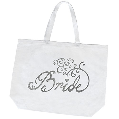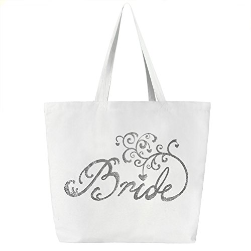 - Classical designed "Bride" is printed professionally with branch , and this white with silver script cotton canvas tote bag is the perfect for organizing essentials on your wedding party.