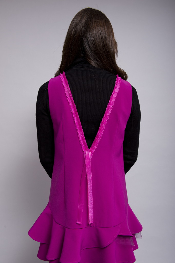 オーガンジーテープで作った細かいタックが繊細なディティールが女性らしいバックスタイルになっています。