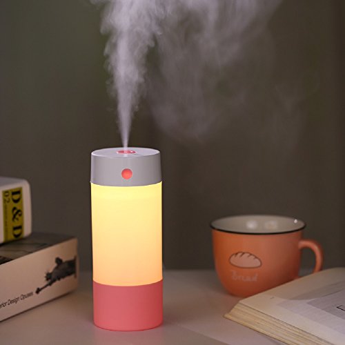 Cool Mist Ultrasonic Humidifier, 250ML USB Portable Mist Air Mini Humidifier-Quiet Operation, Automatic Shut Down, Night Light Function For Office Home Bedroom Car (Pink-250ML)
