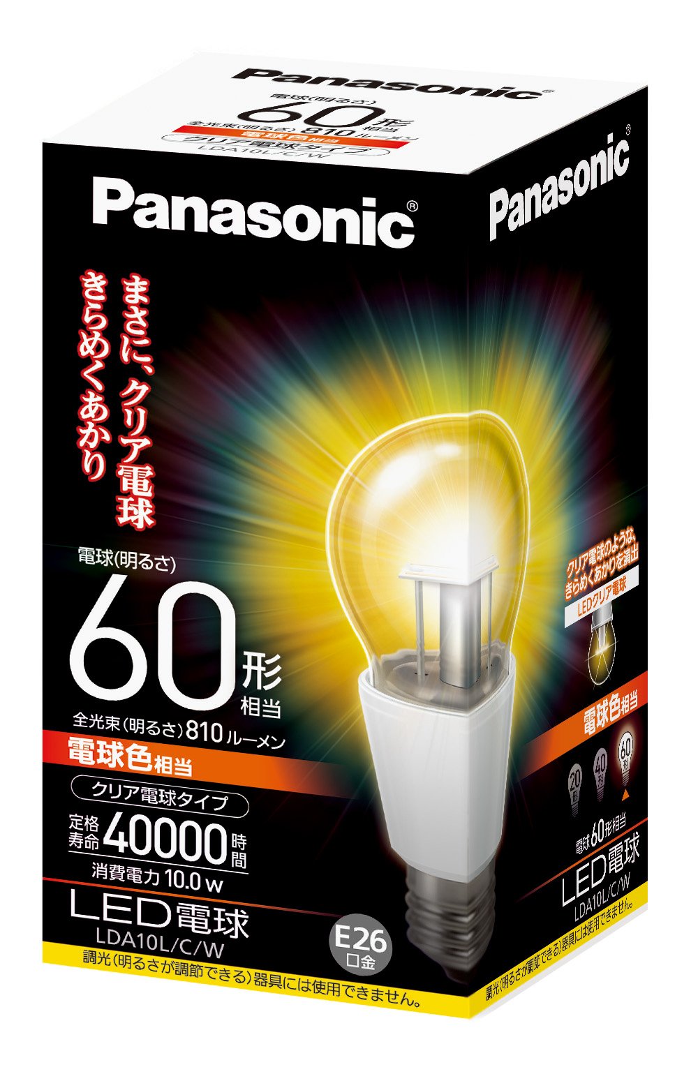 ● <Clear light bulb type> Brightness bulb equivalent to 60 W type (810 lm) ● Directing a sparkling light like a clear light bulb ● Long service life of about 40000 hours * 1.