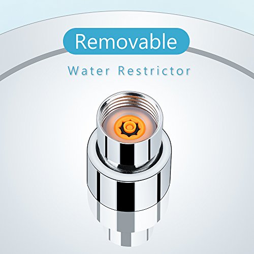 - 【 Removable Water Flow Restrictor 】-- Rainfall Shower Head with max flow rate 2.5 gpm, works even under low water pressure. Add shower head flow restrictor for water conserving (1.5 gpm), without sacrificing your full rainfall shower experience. Easily to covert high pressure shower head to low flow shower head