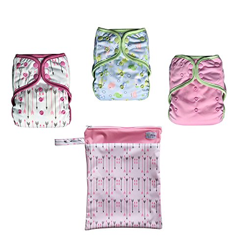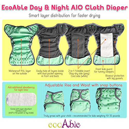 EcoAble Baby Day & Night All-In-One AIO Cloth Diapers, Size 10-35Lb, 3-Pack Bundle (Girl)
