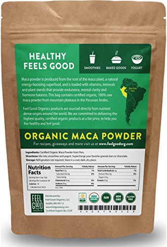 Organic Maca Powder (Raw) - 16oz Resealable Bag (1lb) - 100% Raw From Peru - by Feel Good Organics