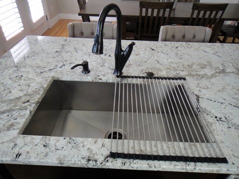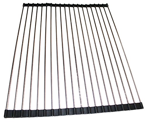 -. Feature : Our multipurpose dish drying rack is made with premium grade stainless steel - UpGood doesn't coat the rods with silicone because you deserve high quality, beauty and perfection. / Better dimensions than the competition! A larger surface area not only gives our dish rack more usable working room, but it also gives you more rack for your money. Unroll it all the way, or fold it over to customize the size. In addition, unwanted rods can be easily removed to make difficult placements a snap. / The mat sits nicely over the sink to help save space and make cleanup a breeze. CUT meats, fruits or vegetables on a cutting board. DRY your dishes without using up valuable counter space. DRAIN juices and water directly into your sink. / What else can it do? Cool down hot foods and casseroles by using it as a trivet. This sink rack can safely hold up to 30 lbs and is heat resistant up to approximately 450°F. When finished, it will quickly roll up for fast and easy storage. And don't worry; it's also dishwasher safe and BPA free! / Please maintain a level surface area and do not attempt to insert items in-between the rods * Dimensions: 20 1/8" L x 15 5/8" W * (UpGood Rack'n Roll'r)