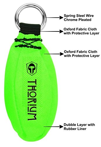 Studio : Thorium Publisher : Thorium Product Description Thorium Slingshot Launcher Throw Weights - Your no-nonsense throw weight bags! Thorium Throw Weights have a proven aerodynamic design to help increase your throw distance and accuracy. Manufactured from highly visible green woven Cordura material. Each throw weight is double stitched and fitted with a Nickel Plated ring (20mm) to easily attach a line. Double-layer construction gives the throw weight excellent longevity. Its streamlined shape facilitates passage through tree branches. You can drop these throw bags from a height on a concrete floor and they won't burst open like some cheaper alternatives. Never lose a throw weight again! The Neon Green throw weight will stand out against any background - leaves, sky, dirt, etc Multi Two Pack contains: One 12oz (340g) Throw weight bag and One 16oz (450g) Throw weight bag. Features of the Thorium Throw Weight: - Reinforced Cordura material - Double-layer construction - Steel ring for attaching a rope - Sleek, Aerodynamic design - Bright contrasting color for easy visibility A simple tool with many functional uses: - Perfect for using in the summer when out camping. Simply attach the Thorium Throw Weight to an extension cord with an outdoor light on one end, then toss it over a branch, raise the light up in the tree to give overhead light which also attracts the bugs away from you. - Use the Thorium Throw Weights to clear dead branches and limbs off the your roof. - Use it in low lying areas to run a hose under your deck. - Easily raise your antenna up in a tree, to receive the perfect reception. - The Thorium Throw Weights has enough weight to easily throw a rope 25ft up. - Perfect for raising Christmas decorations into the trees. - Use it to get a climbing rope over tree branches. The Thorium Throw Weight will meet all your expectations! 0 |