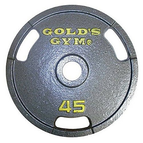 Studio : .Gold's Gym Publisher : .Gold's Gym Binding : Misc. Product Description The Gold's Gym 2-Inch Grip Plate is made of solid cast-iron with a baked enamel finish. The three-hole grip design allows for easy handling when changing plates. Accommodating 2-Inch Olympic bars, the grip weight plate offers a handy way to start a home gym or to expand your current setup. Give your muscles an optimal workout at home with the right plates. The baked enamel finish on the plate offers a measure of attractiveness with the long-lasting durability you need in a home weight set from Gold's Gym. 0