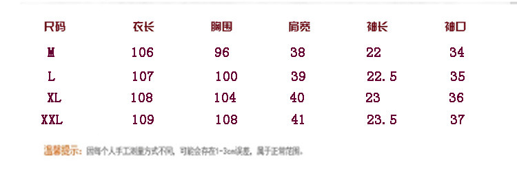 肩宽42cm  袖长23cm  胸围94cm  衣长106cm