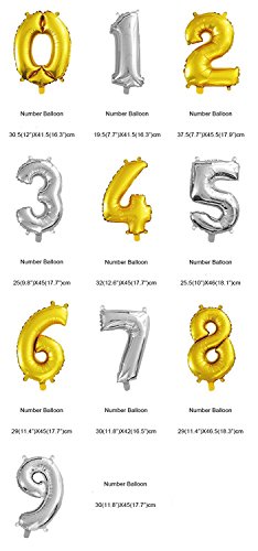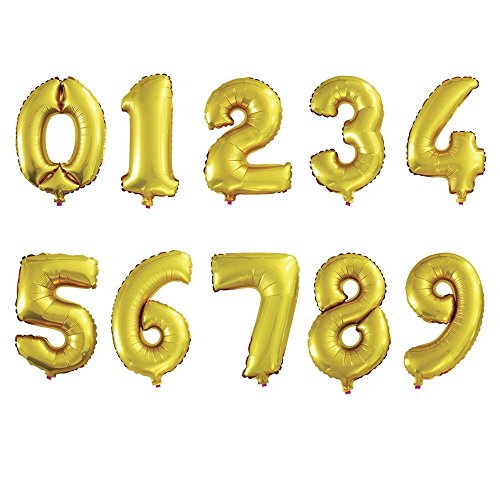 AnnoDeel 10 pcs 16inch Number Gold Balloons, 0~9 Gold Foil Balloons for Birthday Wedding Party Decorations Number Balloons
