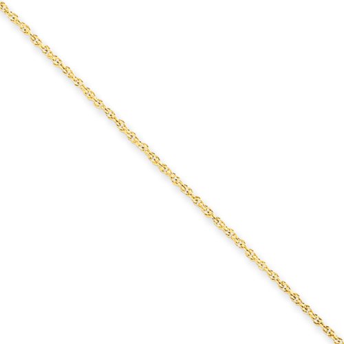 -. Feature : Fashioned from 14k yellow gold / 1.3mm in width / Closes with a secure lobster clasp / Baby rope chain design / Includes our custom gift box