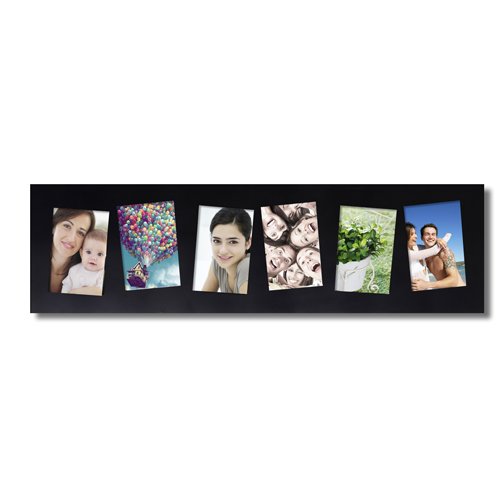 This fun, multi-photo frame is a dynamic addition to any room. The matte finish highlights a slanted, accordion-style row of images - the perfect fit for a collection of family photos, outings with friends or remembering a special event. Space for six 5x7" photos and the option to hang horizontally or vertically gives you the freedom to display your favorite snapshots however you want. Order a few for wedding or birthday gifts, or create an eye-catching collage for your living room or bedroom.Feature