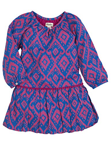 Hatley girl's sateen pom pom dress is a classic A-line dress with a bubble hem, featuring an original Hatley print, sweet ruching at neckline and cuffs, and pom pom trim at the waist. Match with Hatley's fantastic leggings or cable knit tights for a perfect outfit