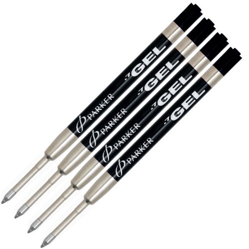 Parker Gel Rollerball Refill for Roller Ball Pens Medium Point Black Ink 4-Total refills