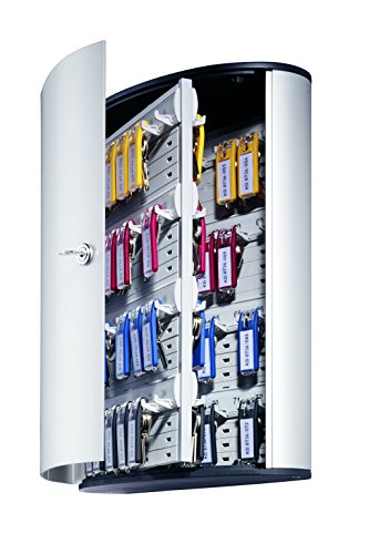 DURABLE Key Box with Key Lock, Holds 72 Key Tags, 11-3/4 x 4-5/8 x 15-3/4 Inches, Brushed Aluminum (195523)