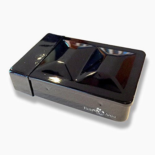 - HEAVY DUTY PALETTE/BOX - Enameled metal case has a built-in water flask, fold-out palette, snap-on water cup, thumb ring mounted on bottom of case, box can hold up to 12 half pans, or eight half pans leaving the center channel for travel brush, etc.