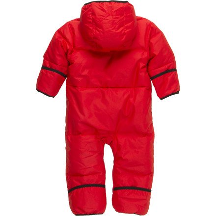 Product Description Soft downy warmth perfect for the coldest environments, this cozy baby bunting is water and wind resistant, with a soft microfleece lining on the hood and torso to keep their soft skin comfortable, as well as 60/40 duck down and fold-over cuffs to lock in body heat. 0