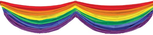 -. Feature : One pennant banner / Pennant banner is approximately 5′ x 10″ / Fabric bunting has adjustable drawstrings / Horizontal blue, green, yellow, orange, red, and purple stripes