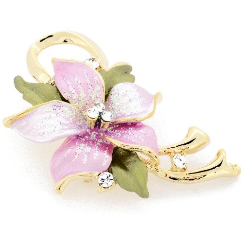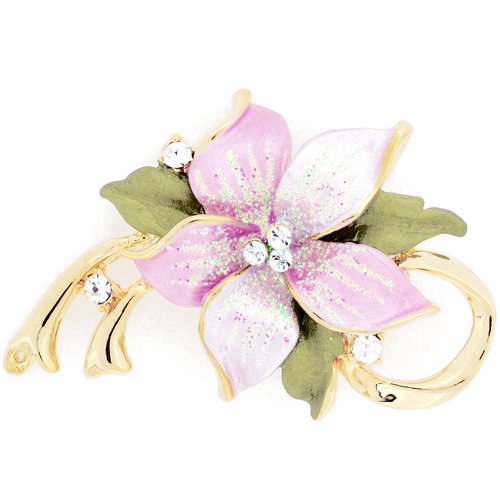 -. Title : Pink Poinsettia Crystal Flower Brooch Pin and Pendant