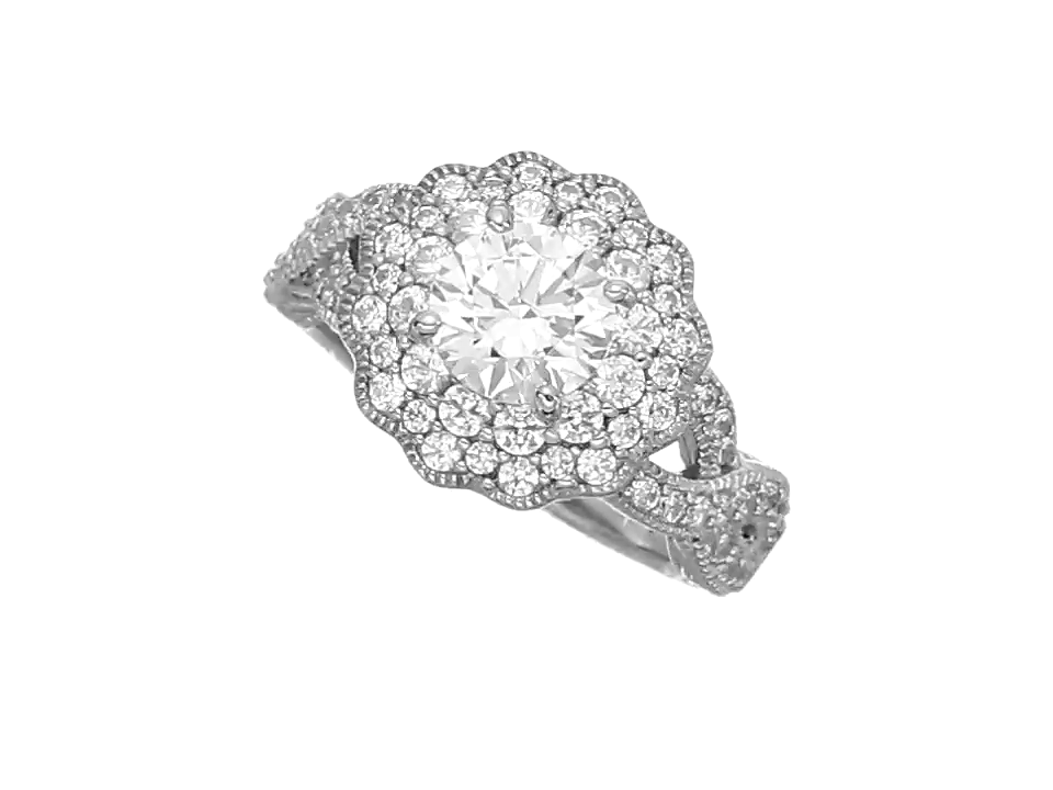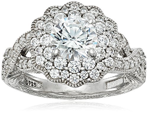 Platinum Plated Sterling Silver Made with Swarovski Zirconia Flower Halo Ring