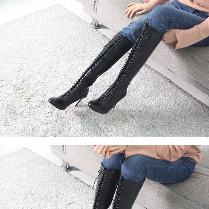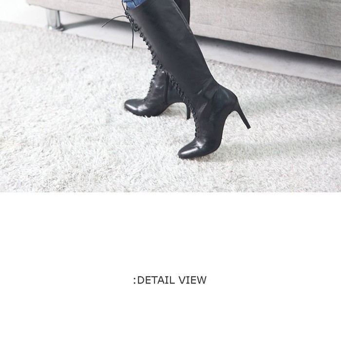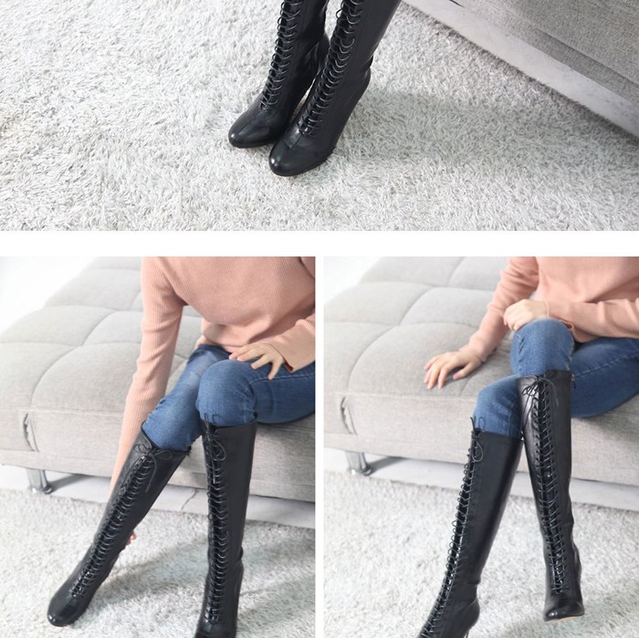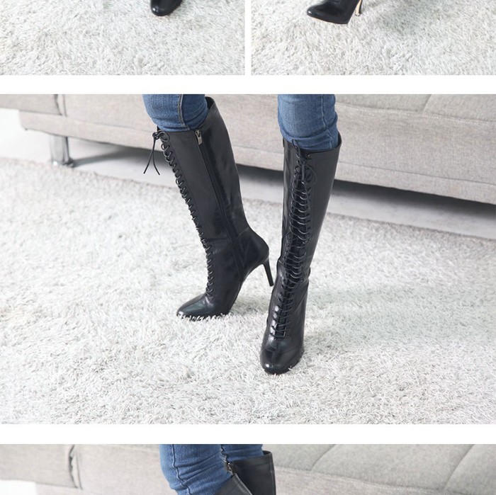 商品名:ロングブーツ レディース レースアップ ピンヒール 2017 秋冬 ファッション 靴 婦人靴