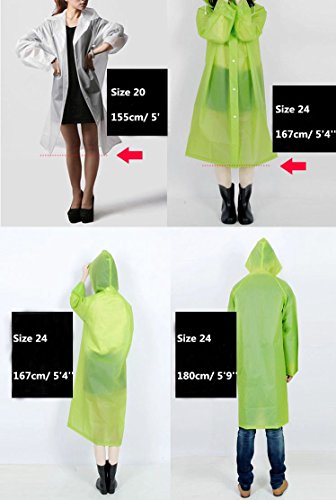 - Feature : Elegant mattering surface in texture and translucent design giving you a sort of secret feeling and adding a hazy beauty in the rain; no rustling sound like market bags creating a quiet rainy world for you / The fresh green keeping you in a lucid mood and also spreading the full good spirits to others / Long body piece with a big hooded cap keeping you dry from head to foot; the adjustable string in the cap brim making it fit your head more closely / Over-length lap showing your beautiful figure in fashionable style without the cumbersomeness of traditional raincoat / Portable and foldable in small size for outdoor carrying in your bag as a precaution or storing when unused