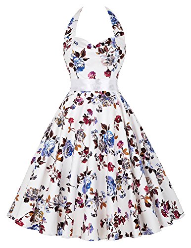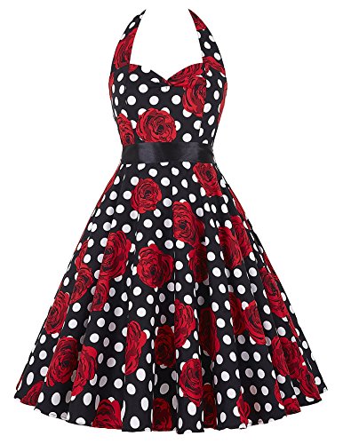Floral/Polka dots printed 50s retro style A-line swing dress