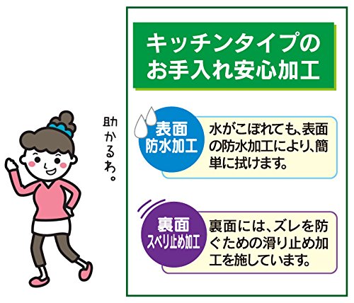 裏面スベリ止め付きなので動きの多いキッチンにも適している。