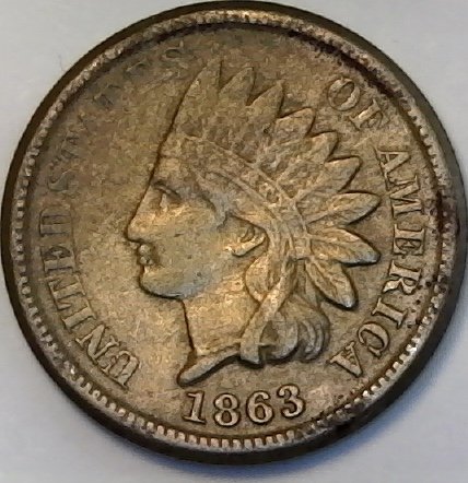 1863 P Indian Head Civil War ERA Penny Cent Very Fine