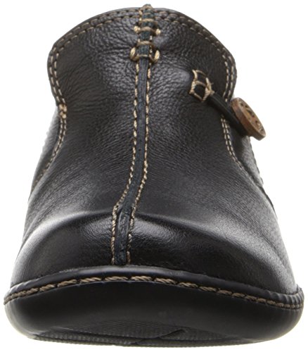 Detailed with contrast stitching and button accent, this women's shoe lends easy style to casual dressing. All-day comfort comes from soft leather, extra padding, and an OrthoLite cushioned footbed. Super versatile in black leather, this slip-on style can be worn with skirts, pants, or jeans.