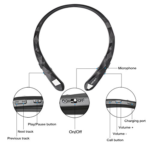 -. Title : DolTech Bluetooth Headphones Sports Sweatproof Wireless Headphones Neckband Retractable Headset Stereo Noise Cancelling Earbuds w/ Mic