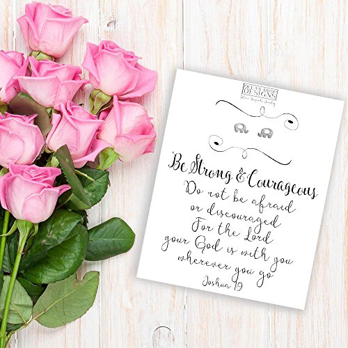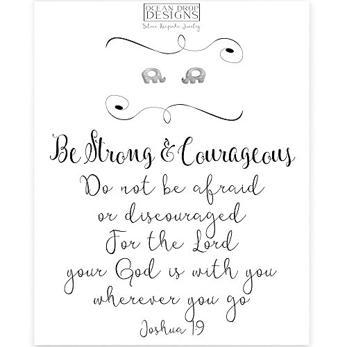 -. Feature : Delicate brushed silver plated Elephant Earrings / Featuring one of the most inspirational Bible quotes, Joshua 1:9, our Be Strong and Courageous Earrings make the perfect gift for those needing a little extra reassurance / Delicate, stylish and easy to wear, these gorgeous brushed silver Elephants signify Strength and Courage. Our Elephant Studs will become her favourite. / Presented in a Gift Envelope with Ribbon, our Elephant Earrings are ready to give. / Our Unique Keepsake Jewelry makes the perfect Friend Gift, Memorial Gift or Get Well Soon Gift.
