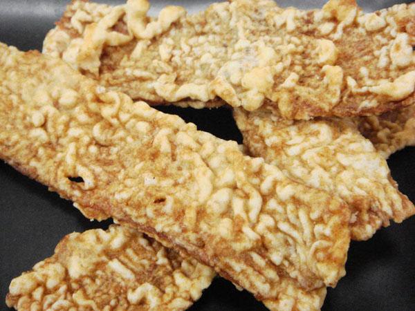 | 原材料 | 小麦粉、植物油、いか、でん粉、卵白、醤油、砂糖、みりん、醸造調味料、たん白加水分解物、食塩、乳糖、風味原料、調味料(アミノ酸等)、甘味料(スクラロース)、酸化防止剤(ビタミンE)、香料 |