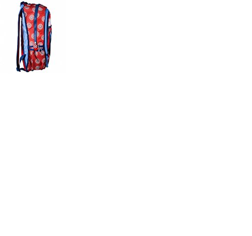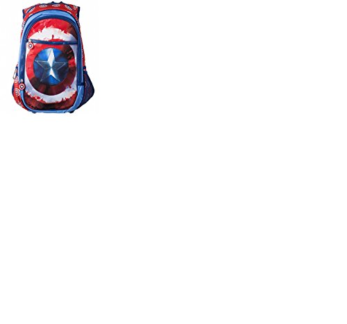 Product Description Carry your school stuff in a bag that looks Marvel-ous! The Marvel Comics Civil War Captain America Shield Backpack is a must have for fans of Captain America. Measures about 15-inches tall x 11-inches wide x 5-inches deep. Includes a pocket for your laptop, 2 smaller compartments, a mesh pocket to hold your water bottle, and a regular pocket with a carabiner attached. 0